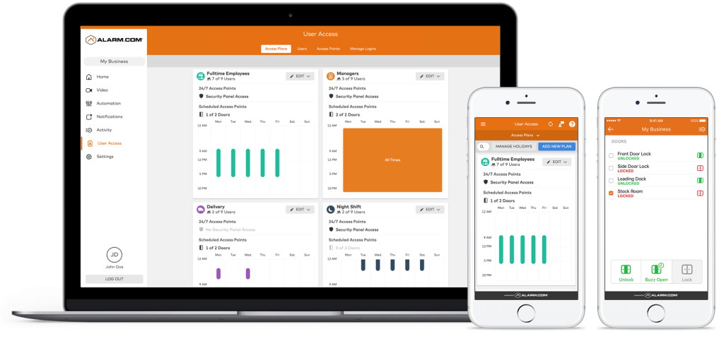 Efficiently manage permissions for all the access points to your business. It’s easy to create and delete users and also to remotely lock or unlock doors. Plus, with our new feature, Mobile Credentials, you can allow users to access specific doors with their smartphone.